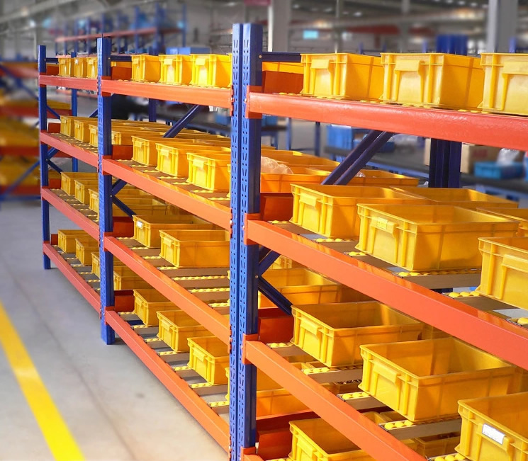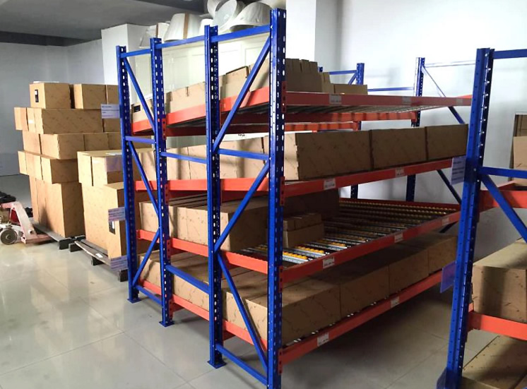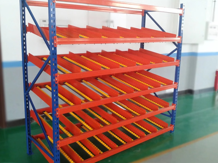 流利货架等同于流利式货架,产品常由中型横梁式货架演变而成,通过滚道将货物从配货端输送到取货端,货物借助重力自动下滑,可实现“先进先出”作业,使用成本低,存储速度快、密度大。通常使用在企业的精益生产流水作业。